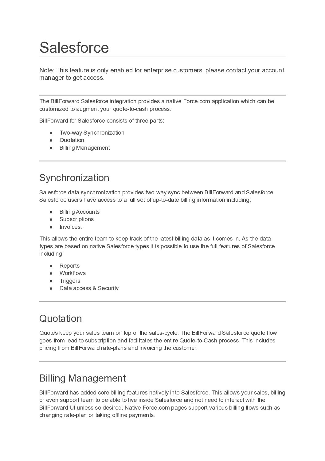 You can access Billforward’s Salesforce documentation following the links below: